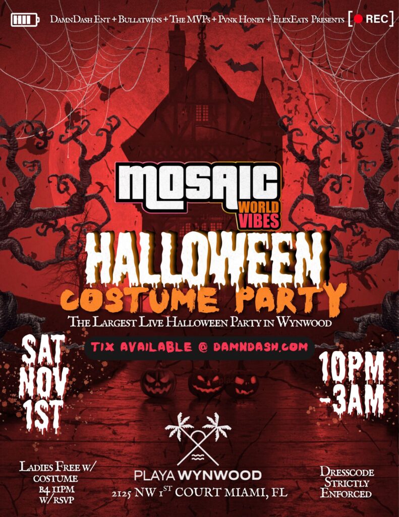 MOSAIC World Vibes Halloween Costume PartyΒ takes overΒ Playa WynwoodΒ β the largest live Halloween party in Wynwood!